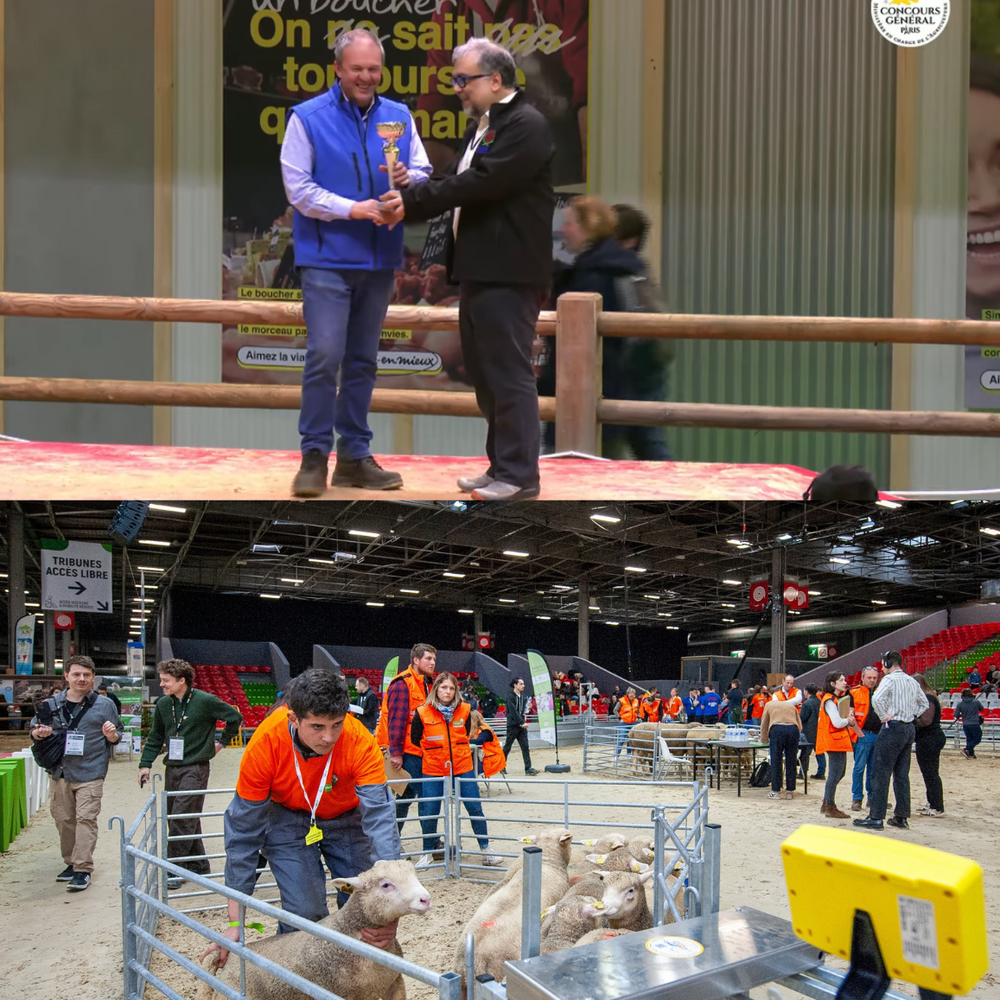 Son directeur, M. Hirtzberger, est présent au Salon International de l'Agriculture 2026 à Paris avec plusieurs moutons Île-de-France pour participer aux concours de race.